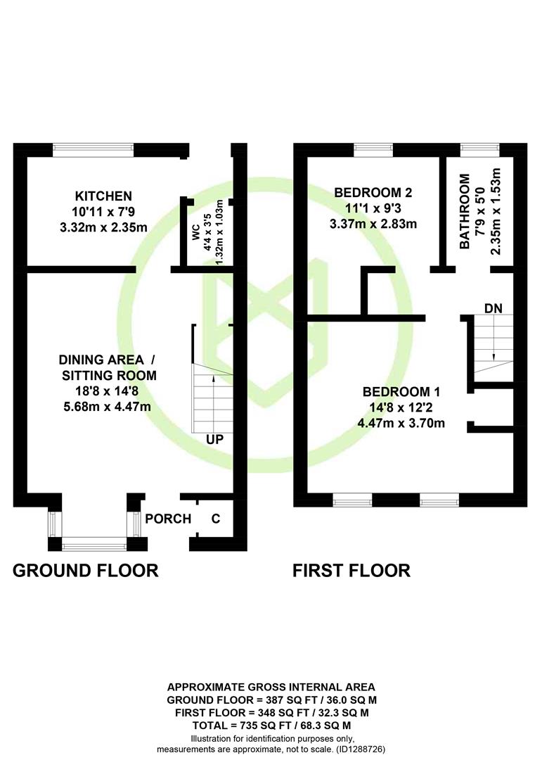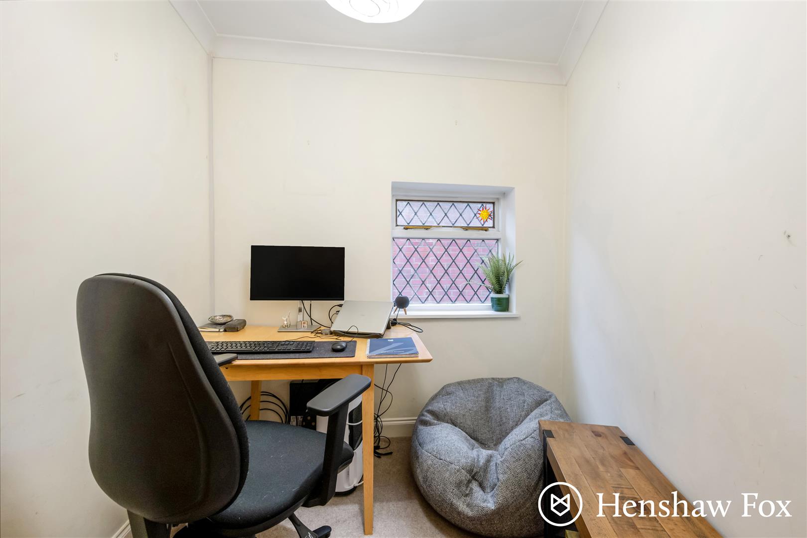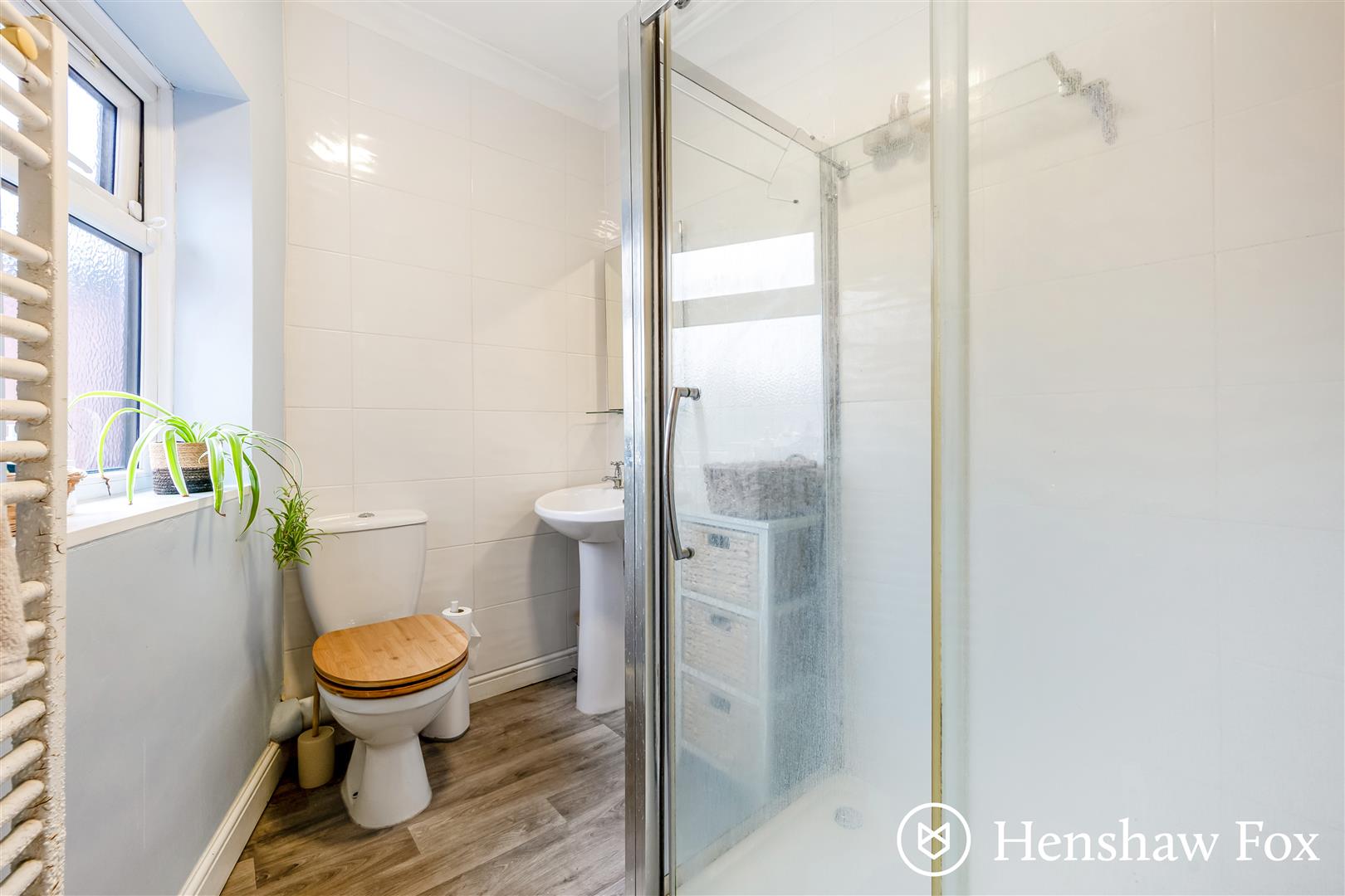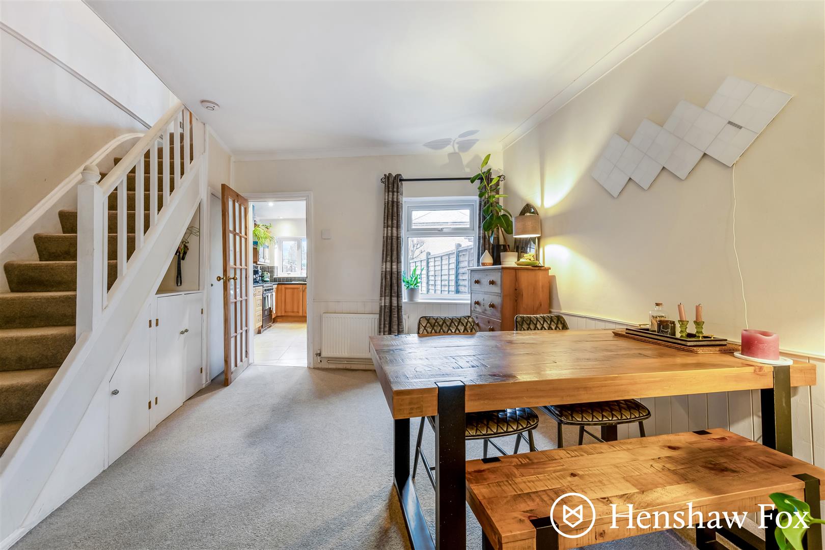 Stairs rise from the dining room to the first-floor landing, which provides access to three bedrooms and the shower room. Bedrooms one and two are comfortable double rooms, with bedroom two also housing the airing cupboard. Bedroom three is a single room that would equally lend itself well to use as a study. The shower room is fitted with a white suite comprising a WC, wash basin, heated towel rail and enclosed shower cubicle.