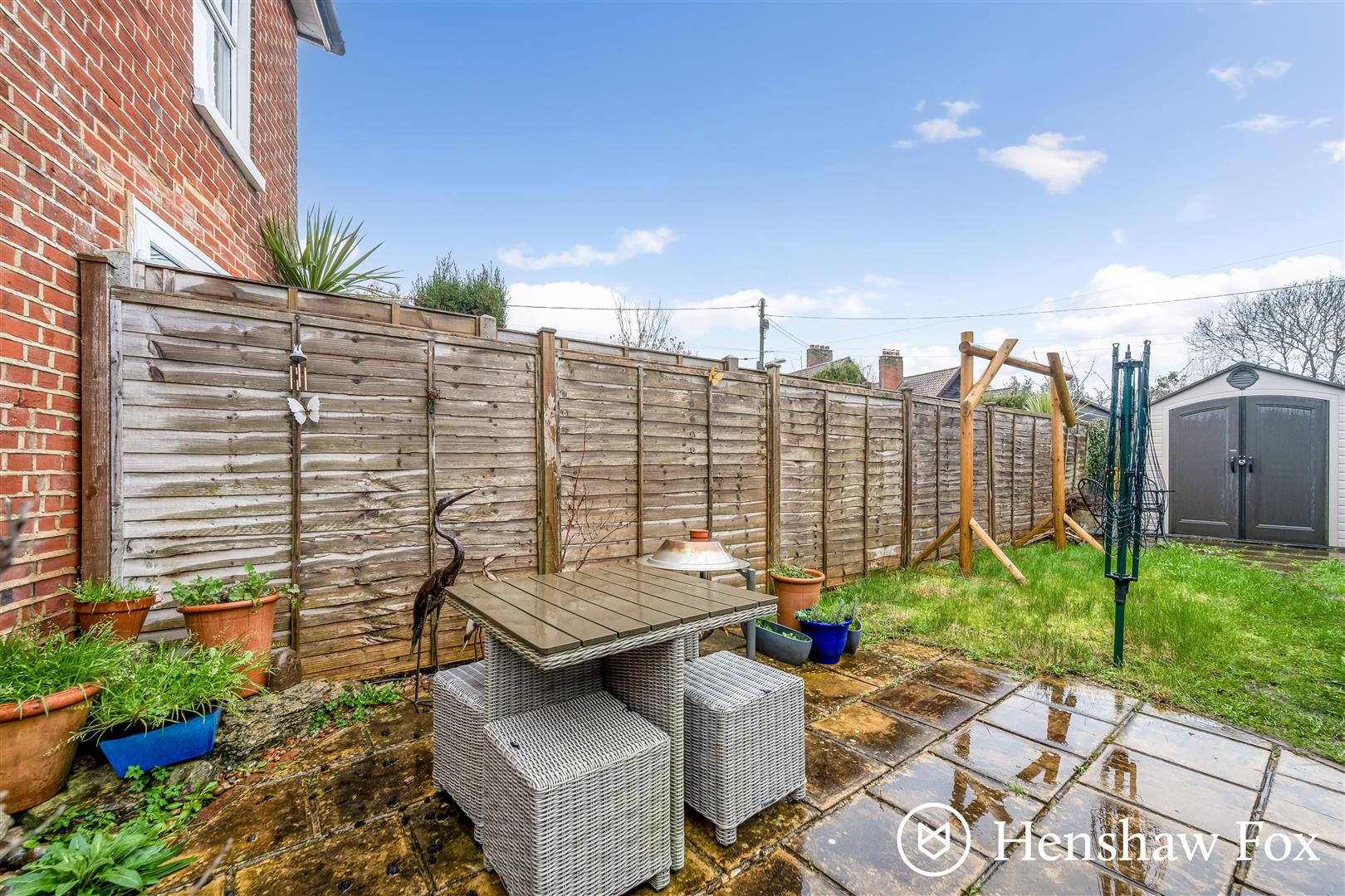 A south-westerly facing rear garden provides a pleasant outdoor space to enjoy the afternoon and evening sun. A paved terrace adjoins the rear of the property, ideal for outdoor seating and entertaining, leading onto an area laid to lawn and enclosed by panel fencing.