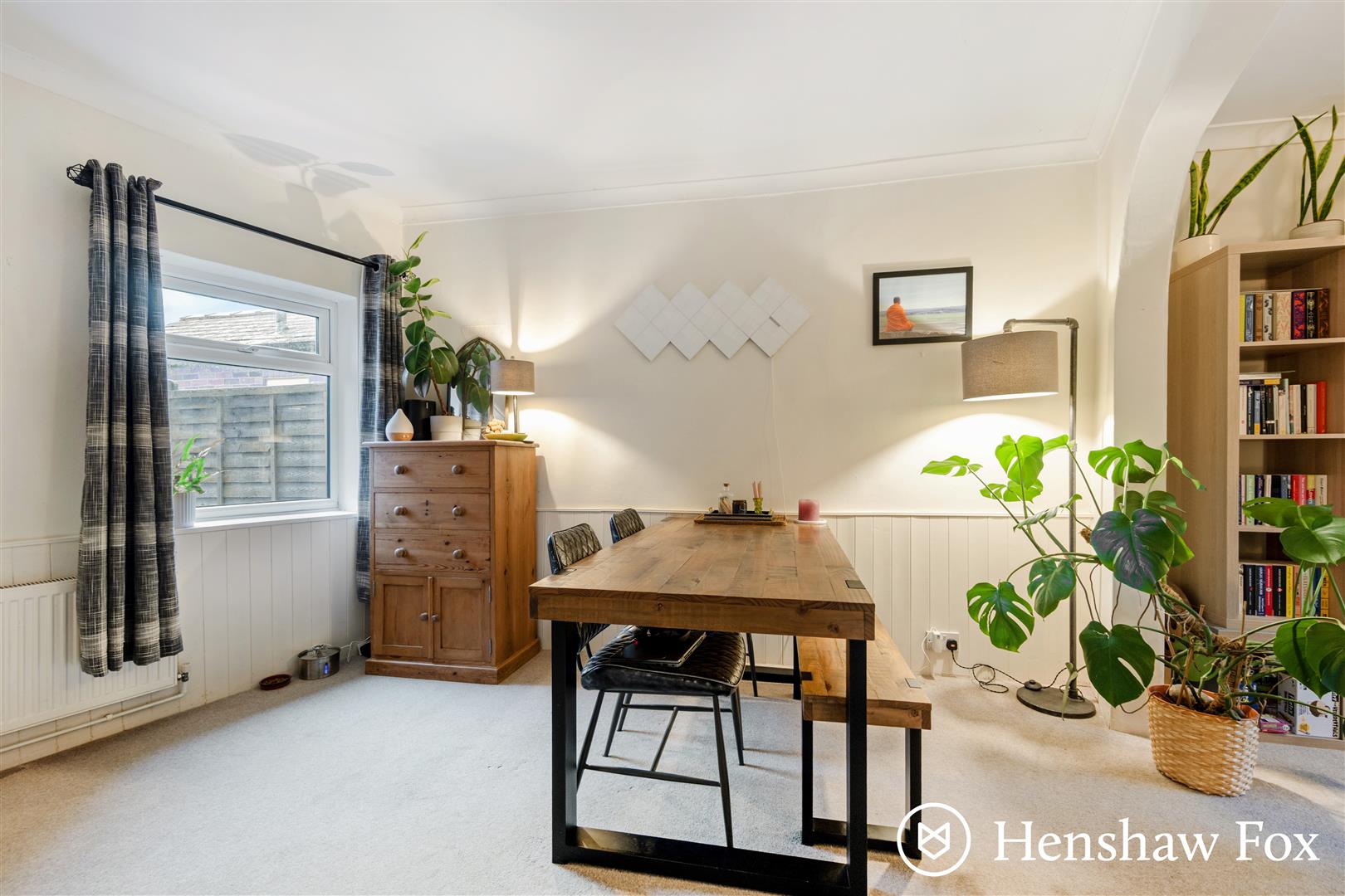 The sitting room is a generous space that opens into the dining room, which provides ample room for a dining suite and benefits from useful under-stairs storage. The dining room leads through to the kitchen, which is fitted with a range of cupboards and drawers, with space for a variety of appliances. The kitchen enjoys a pleasant double aspect overlooking the rear garden and useful door opening to the adjoining patio.