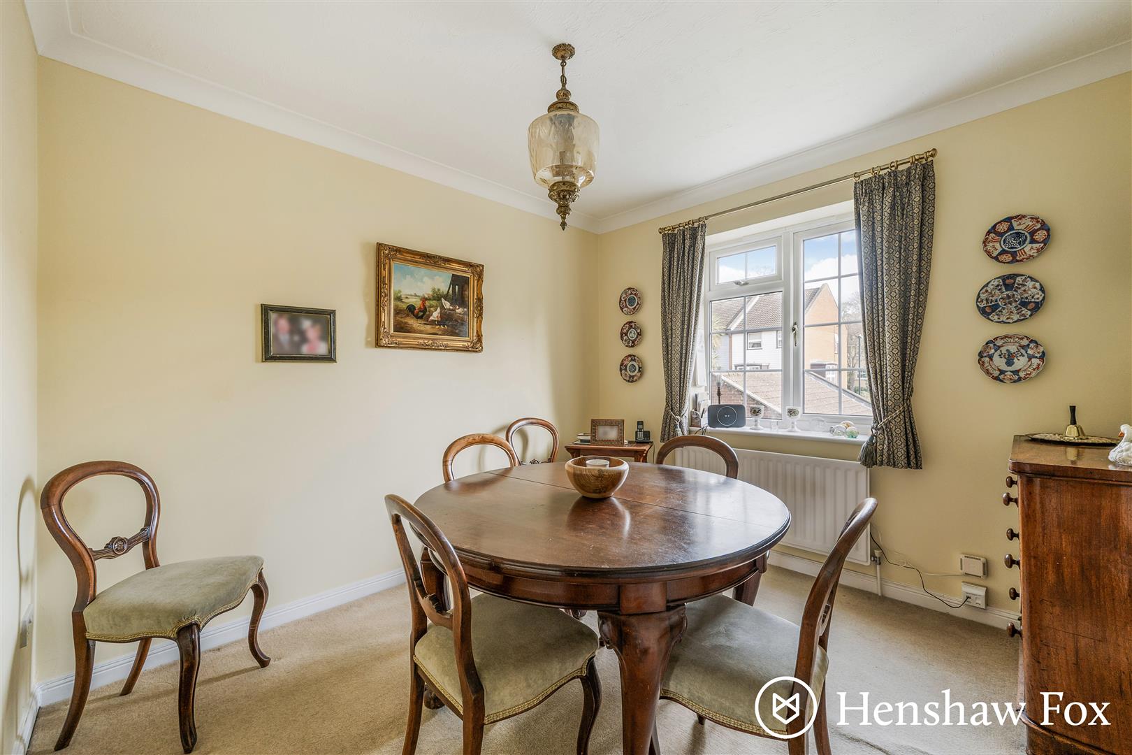 The generous sitting room overlooks the front aspect via feature arched windows creating a bright and airy space with an ornamental fireplace as a focal point to the room. The dining room offers ample space for a family dining table and chairs and flows into the adjoining kitchen via an open arch. The fitted kitchen offers a range of wall and base units with contrasting worksurfaces and inset sink and drainer. Integrated appliances include a single oven with four burner gas hob and filter hood over, fridge freezer and dishwasher.