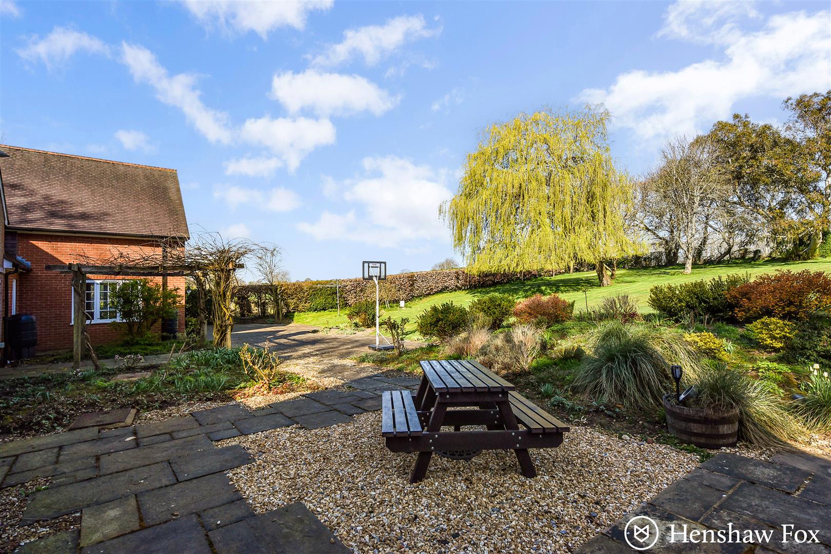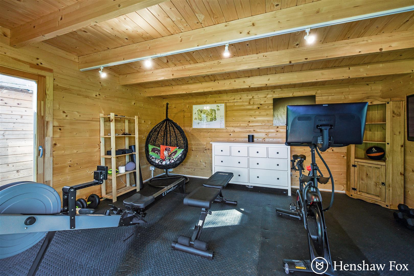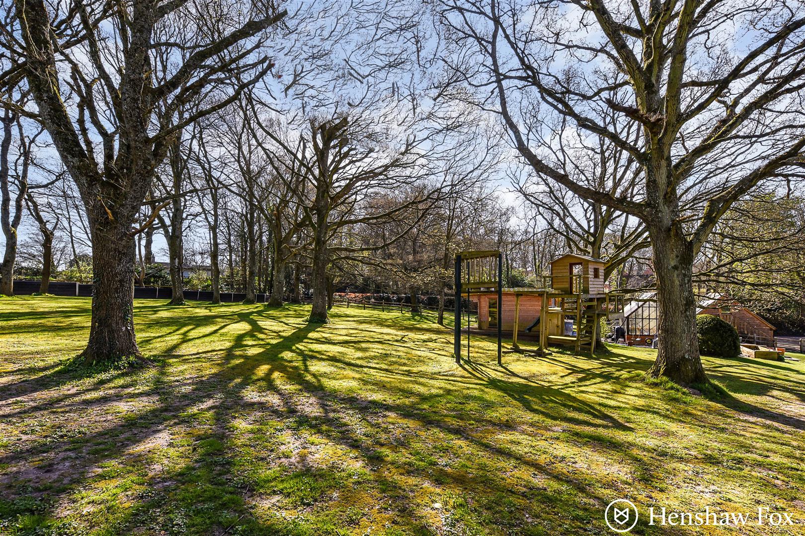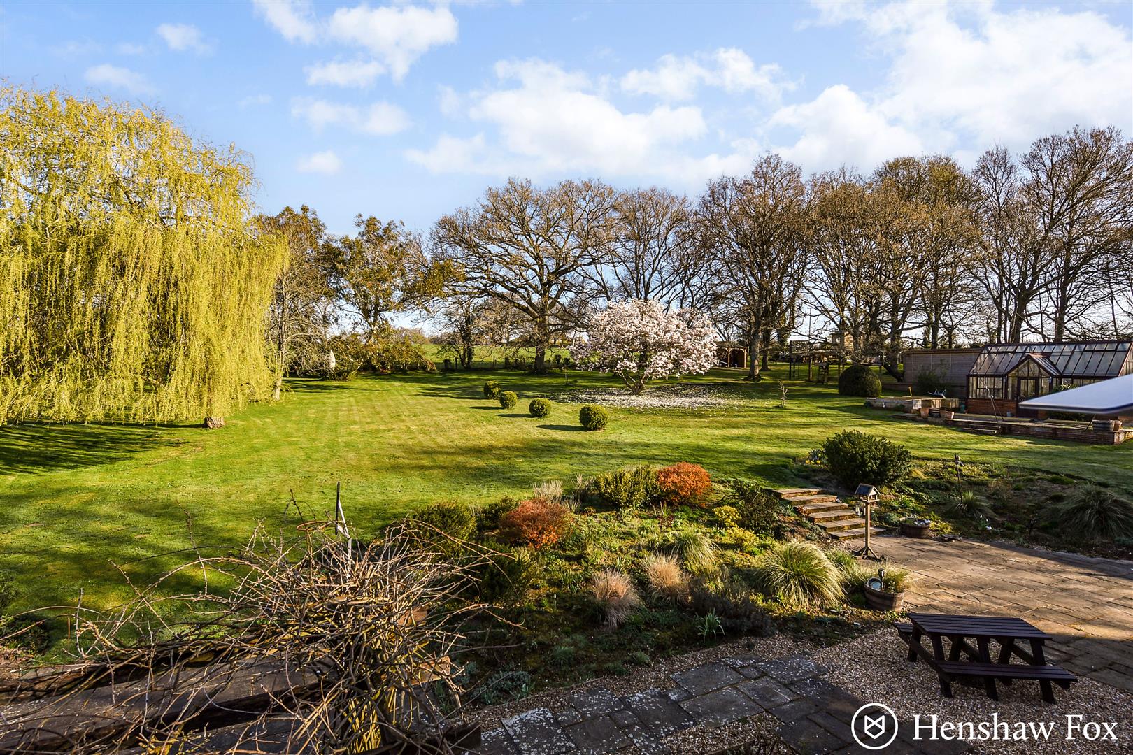 The private and mature grounds extend to approximately one and a half acres and are predominantly laid to lawn, punctuated by a variety of well established trees and plants creating a pleasant back drop. A large patio area abuts the rear of the property, perfect for entertaining or al fresco dining. The current owners have enhanced the outdoor space with features which include a climbing and play area, timber garden store, greenhouse, gym, work shop and impressive double car barn with store room and first floor store. A small area of paddock has been fenced off as well as large area for composting.