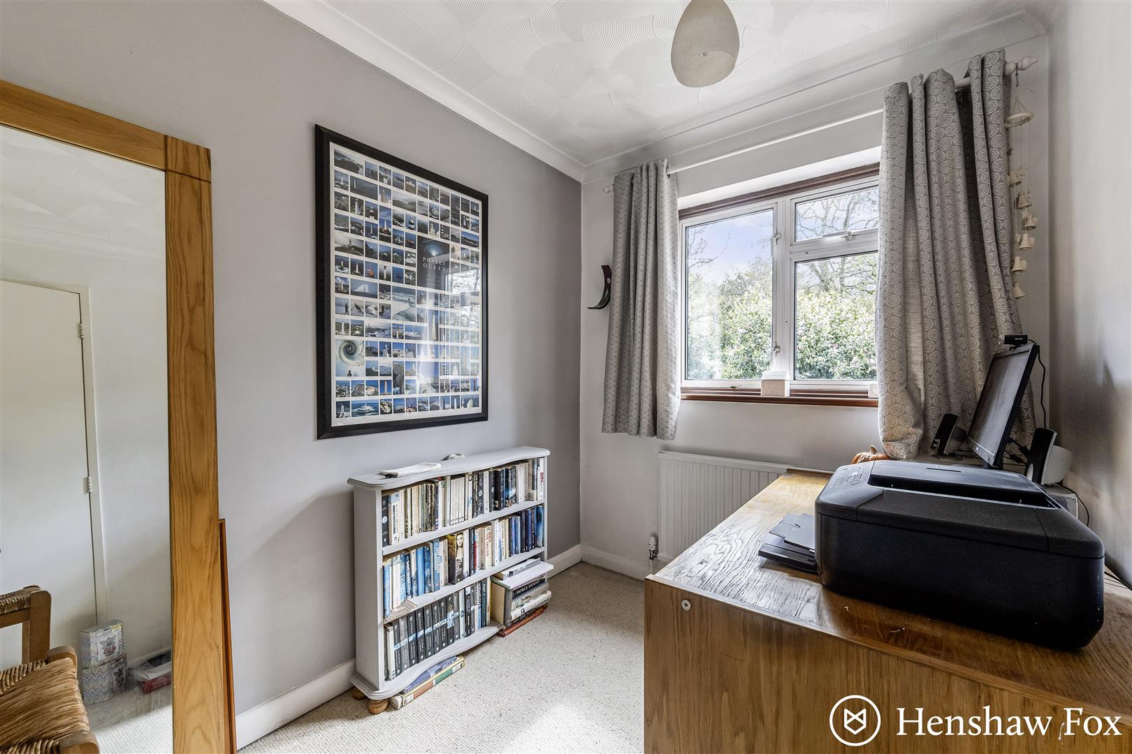 The rear garden is a particular feature of the property, being well enclosed and enjoying a desirable southerly aspect, making it ideal for soaking up the sun throughout the day. Adjoining the property is a patio area, perfect for outdoor dining and entertaining, while the remainder of the garden is predominantly laid to lawn and attractively bordered with a variety of mature shrubs and an assortment of established trees, providing both colour and privacy. A useful door offers direct access to the garage and beyond the garden lies a bridleway