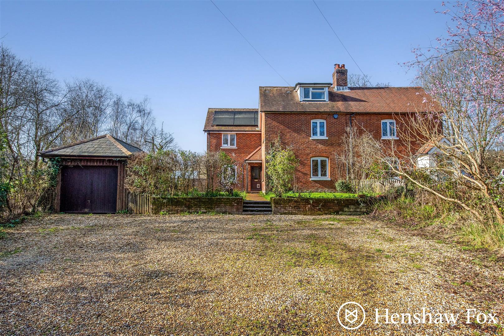An exquisite turn-of-the-century semi-detached home, brimming with character and charm, nestled in a peaceful setting on Embley Lane. Set within a generous plot of approximately 0.2 acres, the property offers well-proportioned accommodation including five bedrooms, a principal en-suite, and a family bathroom. The ground floor features a spacious sitting room with a cosy log burner, a versatile snug, a dining room opening into a kitchen with vaulted ceiling, a practical utility area, and a convenient downstairs cloakroom. Outside, the home benefits from established wrap-around gardens, a versatile outbuilding ideal as a home office, ample driveway parking and a detached garage.