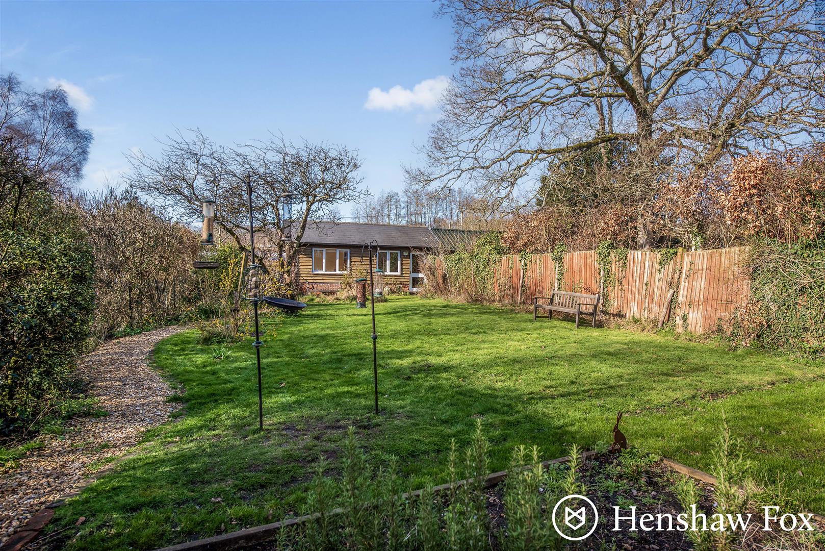 The gardens wrap around the property, extending from the front along the side and into the rear, creating a wonderful sense of space and privacy. To the front, a well-kept lawn borders the pathway leading to the front door, setting an attractive first impression. A generous patio adjoins the left-hand side of the house, providing a peaceful spot for outdoor seating and entertaining, with the added convenience of a door giving access to the rear of the garage. The rear garden is mainly laid to a large, level lawn, thoughtfully planted with established flowering borders, raised beds and mature hedging that offers a good degree of seclusion. At the far end of the garden sits a substantial outbuilding, cleverly converted into a highly useful home office with two rooms and a WC, offering excellent versatility for those working from home or seeking additional hobby space. The overall plot extends to approximately 0.2 acres and enjoys pleasant views towards ‘Willow Lake’, adding to the property’s charm.
