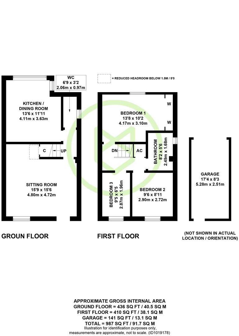 The entrance hall has a built storage cupboard and a door opens into the sitting room. The sitting room has a pleasant double aspect, a door leads to the inner hallway, which provides access to the kitchen/breakfast room, the bedroom/dining room, all three bedrooms and the bathroom. The kitchen/breakfast room is fitted with a range of cupboards and drawers, a fitted oven, fitted hob and space for a range of further appliances, there is space for table and chairs and a door opens to the garage. Bedrooms one and two are both double room that overlook the rear garden, bedroom two would also serve well as another reception room. Bedroom three is a good size single room. The bathroom is fitted with a white suite comprising WC, wash basin and bath with shower over.