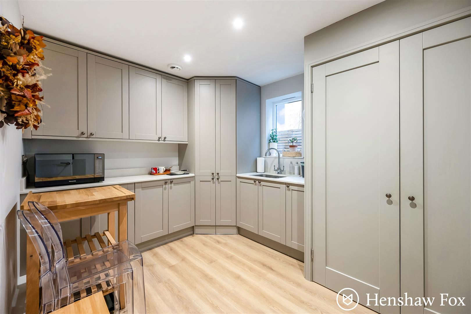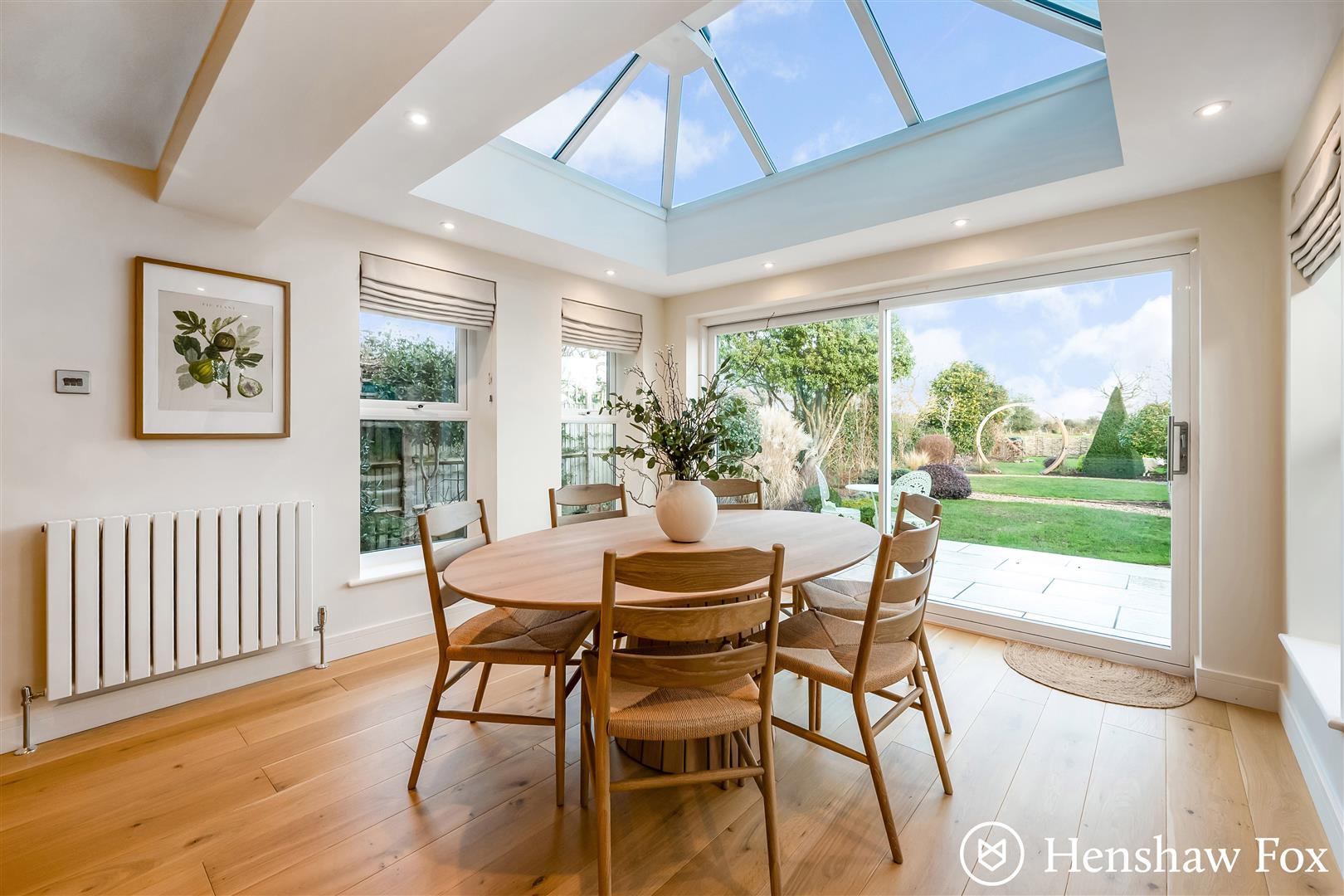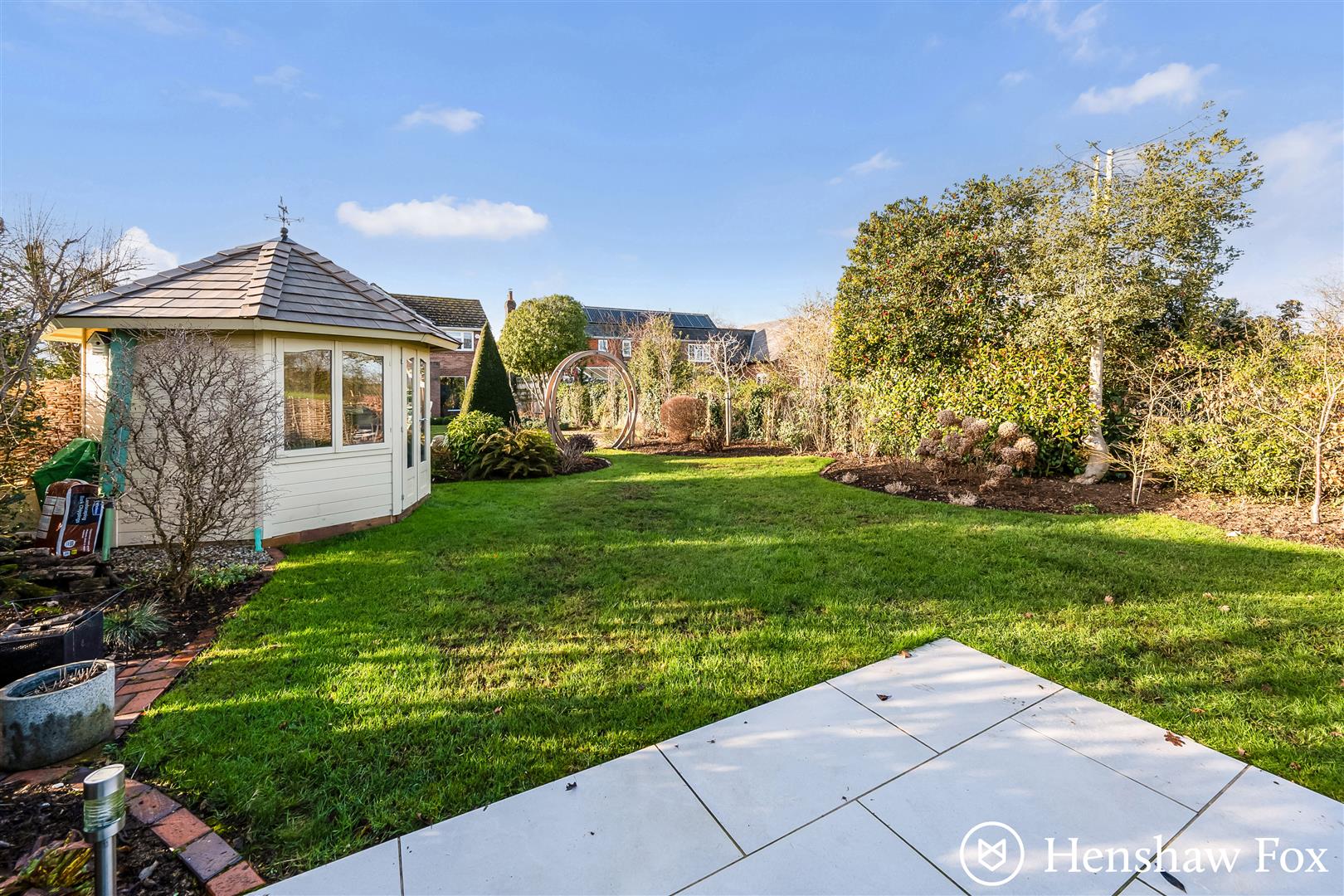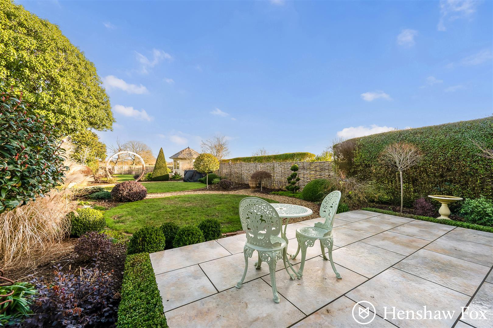 The beautifully landscaped rear garden extends to approximately 110 ft in length and offers an exceptional sense of space. Paving immediately adjoins the rear of the home, creating a terrace ideal for alfresco dining and entertaining, with further expanses of lawn beyond. Established hedging and mature trees frame the garden, while a paved area at the end of the garden provides a pleasant seating area. The garden is further enhanced by a summer house, garden shed and gated side access leading to the front of the property.