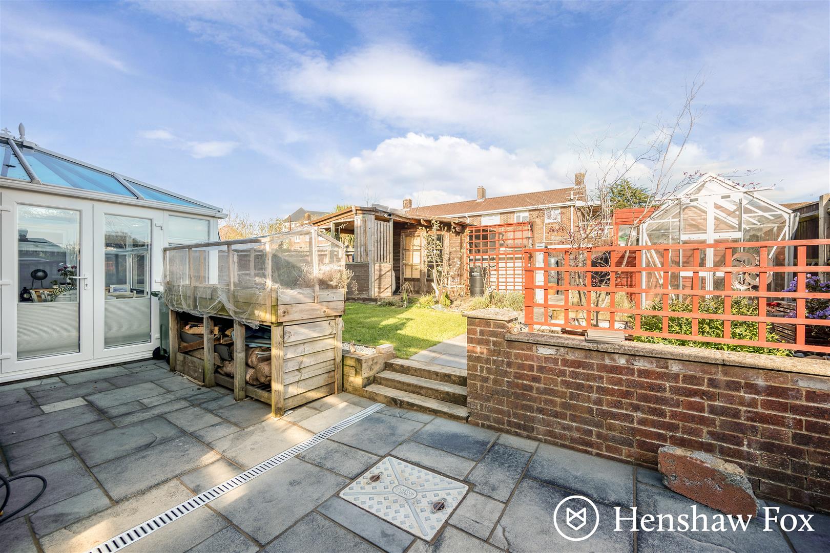 The attractive frontage is screened by neatly trimmed box hedgerows and a pedestrian gate into the immaculate front garden with a block paved path to the front door. A large decking area extends to the side of the property to a covered seating and entertaining area ideal for al fresco dining fitted with power, light and storage. The landscaped rear garden features steps to a raised and well tended lawn with a summer house and covered decking area, log store adjacent, bbq area and timber workshop. The garden is punctuated with a variety of well stocked borders.