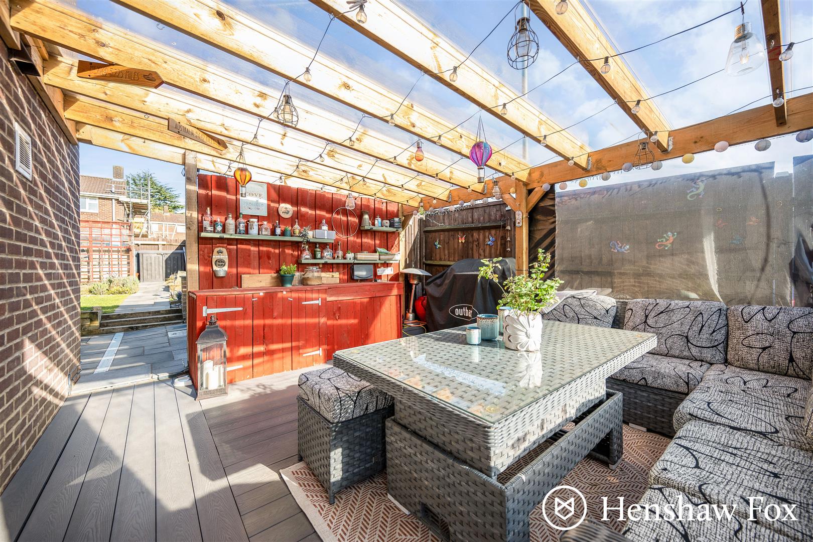 - Covered seating area for entertaining & BBQ area