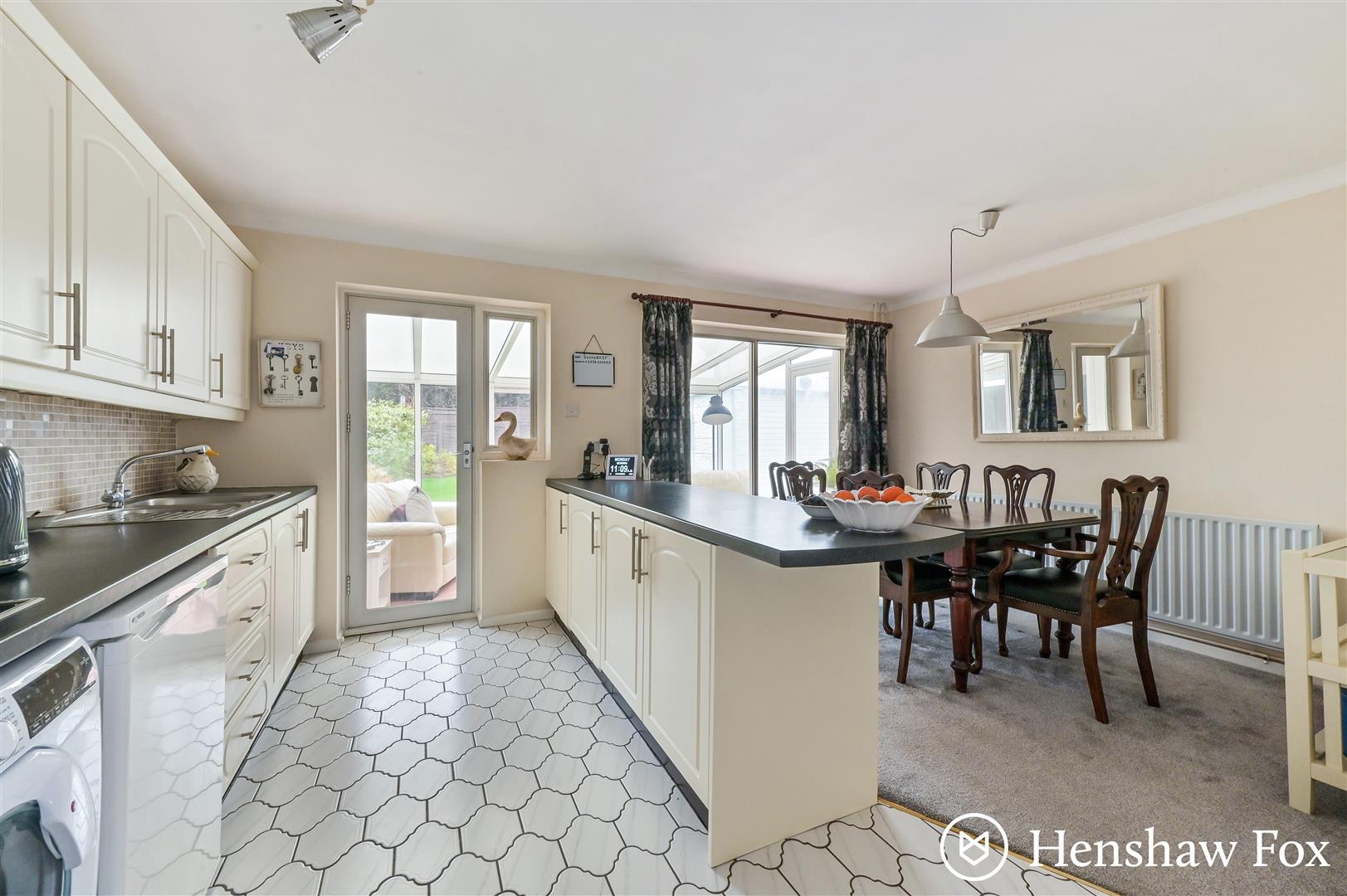The entrance hallway provides access to the sitting room, kitchen/dining room and first floor via the stair case. The sitting room has a large window over looking the front garden, a fire place provides the perfect focal point. Located at the rear of the home, the kitchen/dining room is a excellent space for family. The kitchen is fitted with a range of cupboards and drawers, a double oven, hob with extractor canopy over, there are spaces for a range of further appliances, a door opens to the conservatory. The dining area provide ample space for a dining suite and doors open to the conservatory. Two cupboards under the stairs provide handy storage space.