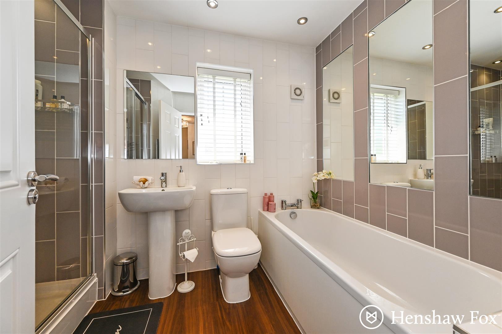 Ascending to the first floor, the landing allows access for all four bedrooms, family bathroom and airing cupboard. The principal bedroom is a generous double, enjoining dual aspect windows, built in wardrobe and en-suite comprising floor to ceiling tiles, shower unit, WC wash basin and heated towel rail. Bedroom two is a spacious double with fitted wardrobe and onlooks the front aspect. The remaining two bedrooms are each doubles with built in wardrobes, both onlooking the rear garden. The family bathroom features stylish floor to ceiling tiles, shower unit, bath, WC, wash basin and heated towel rail.