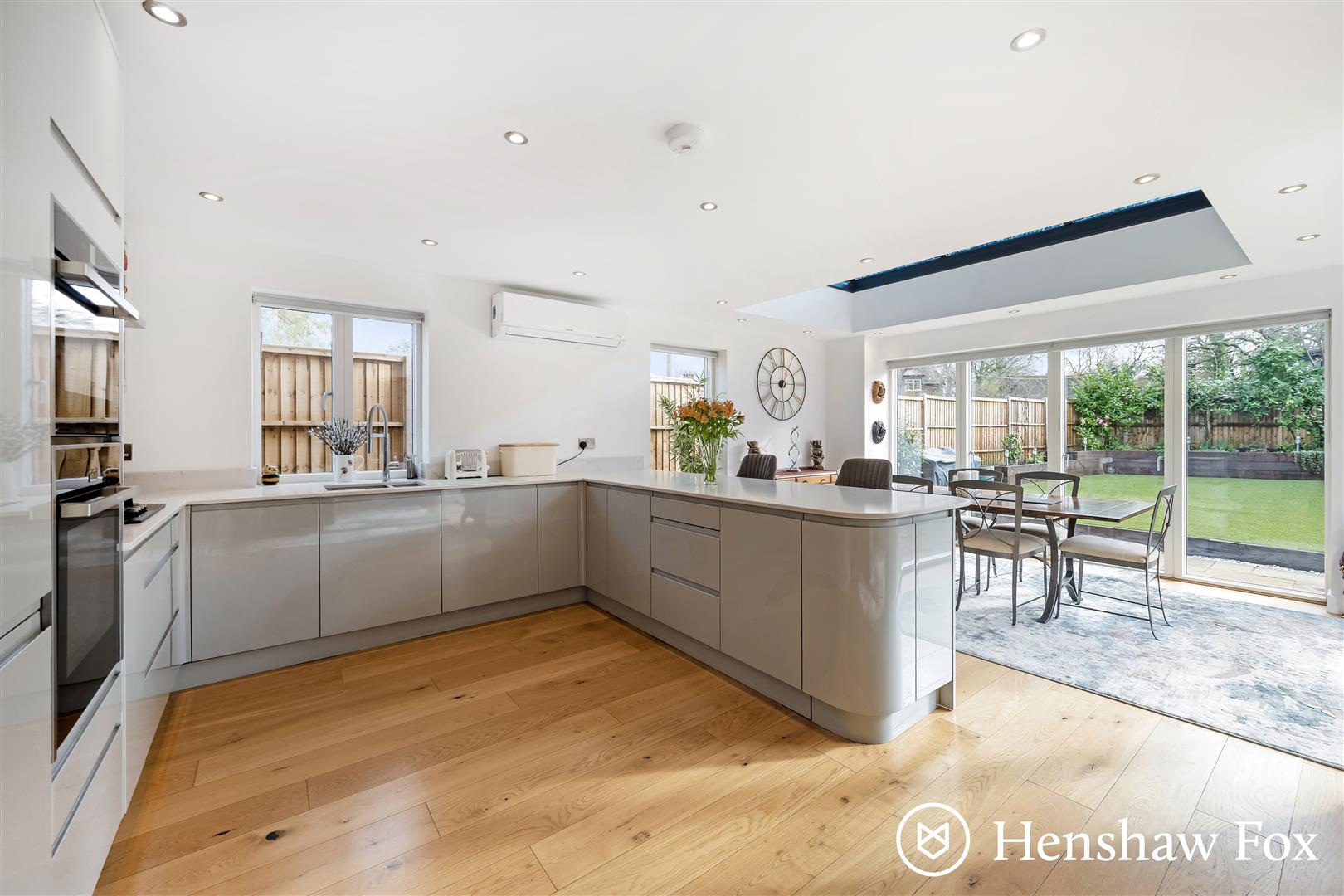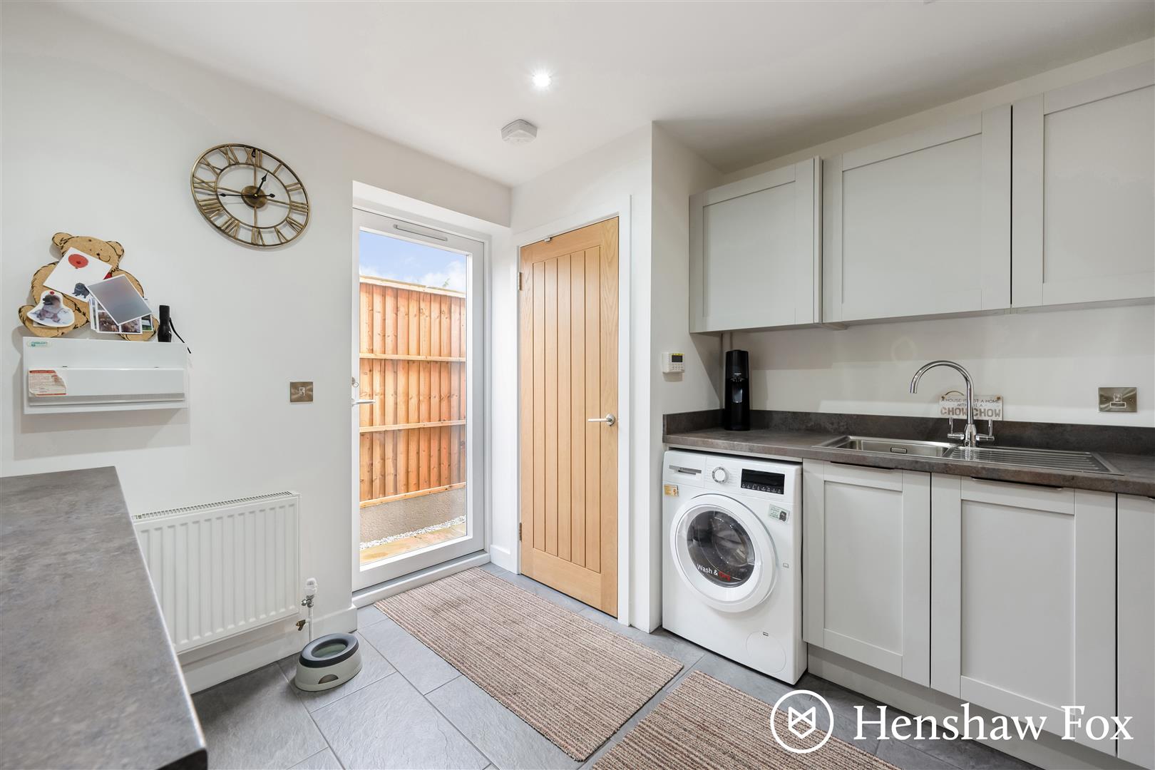 This stylish modern detached home was constructed in 2016 offering Eco friendly living with a light and airy feel flowing throughout this immaculate property. The impressive open plan 'live in' sitting, dining and kitchen area form the social hub of the home, flooded with natural light via three sets of sliding doors and a glazed roof canopy capturing the sunny southerly aspect. A separate study/snug adds versatility with a large utility room providing access to the rear of the part converted garage. The first floor boasts three generous double bedrooms with a bespoke range of built in storage and a luxury en-suite to bedroom one and a balcony. The family bathroom is well appointed serving bedrooms two and three. Ample off road parking is available on the gated driveway with side gates through the landscaped and low maintenance rear garden. Under floor heating is fitted throughout the property as well as air conditioning, water softener and a rain water harvesting system.