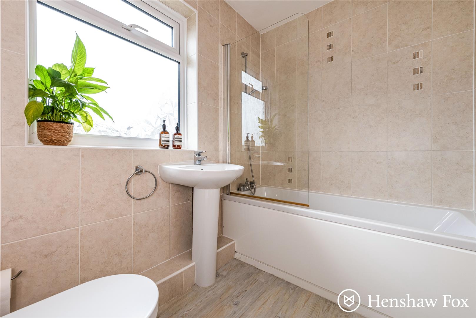 The first-floor landing provides access to all four bedrooms and the family bathroom. The principal bedroom is a particularly generous double, benefitting from a built-in wardrobe, an airing cupboard, and a private en-suite shower room. Bedroom two is also a spacious double and features a built-in wardrobe, offering excellent storage. Bedroom three is another well-proportioned double room, ideal for family members or guests. Bedroom four is a good-sized single room, perfectly suited as a child’s bedroom, home office, or study, depending on your needs. The family bathroom is fitted with a contemporary suite comprising a bath with shower over, low-level WC, and wash hand basin, providing both style and functionality.