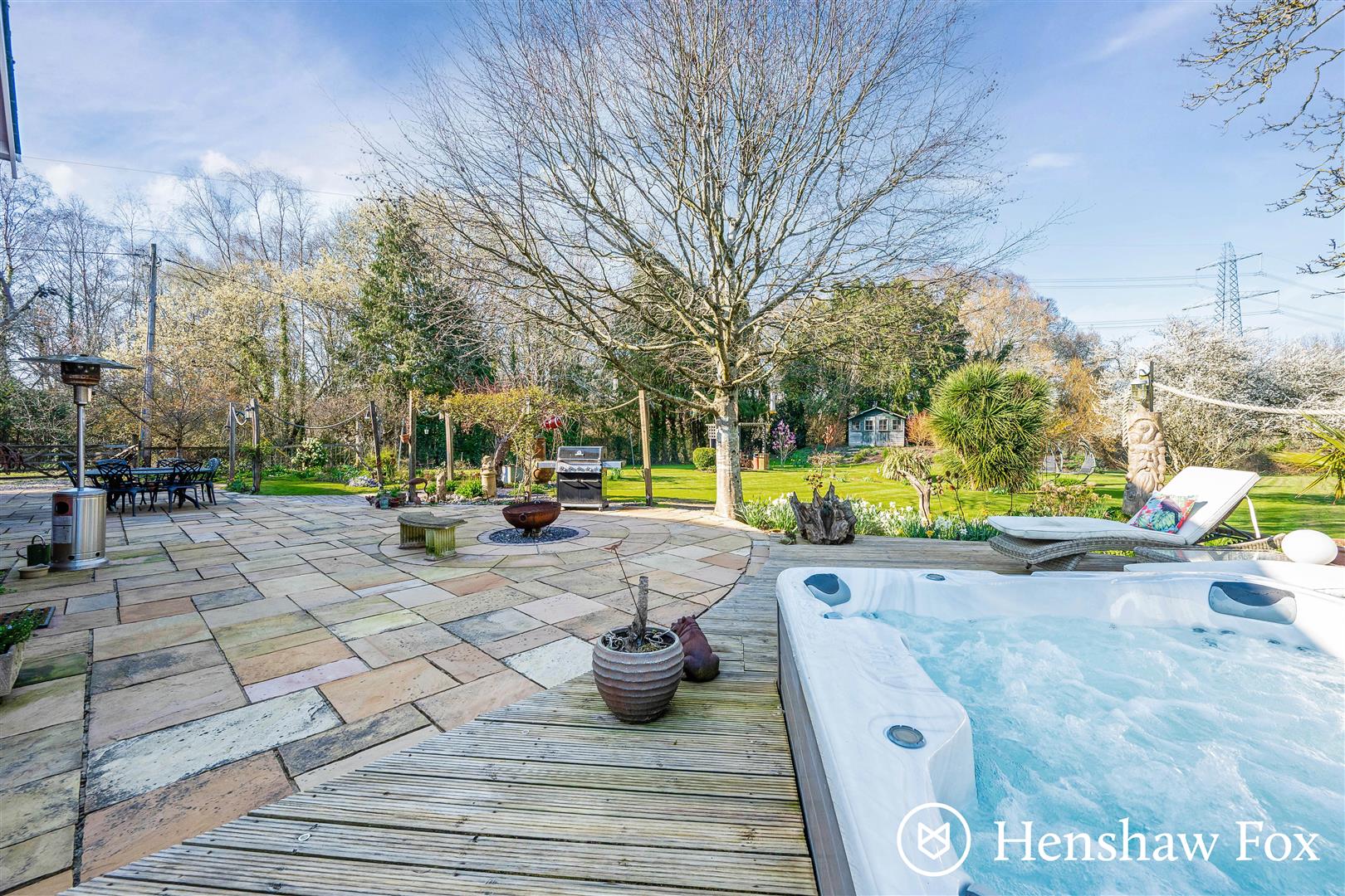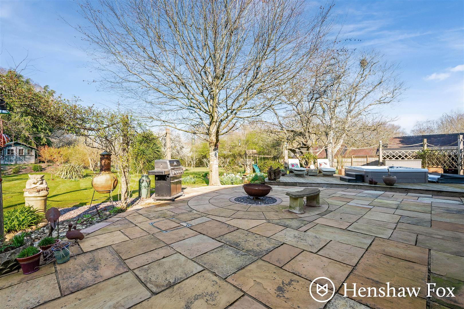 The outside space is a particular highlight of the property, extending to approximately 1.20 acres and offering a high degree of privacy. A generous terrace and decked area adjoins the main house, creating an ideal setting for outdoor dining and entertaining, with a hot tub discreetly inset into the decking. The gardens are mainly laid to lawn and framed by established trees and mature hedging, providing attractive views and a peaceful backdrop. A range of outbuildings offers useful storage, while the overall setting feels both private and well-proportioned, perfectly suited to relaxed countryside living.