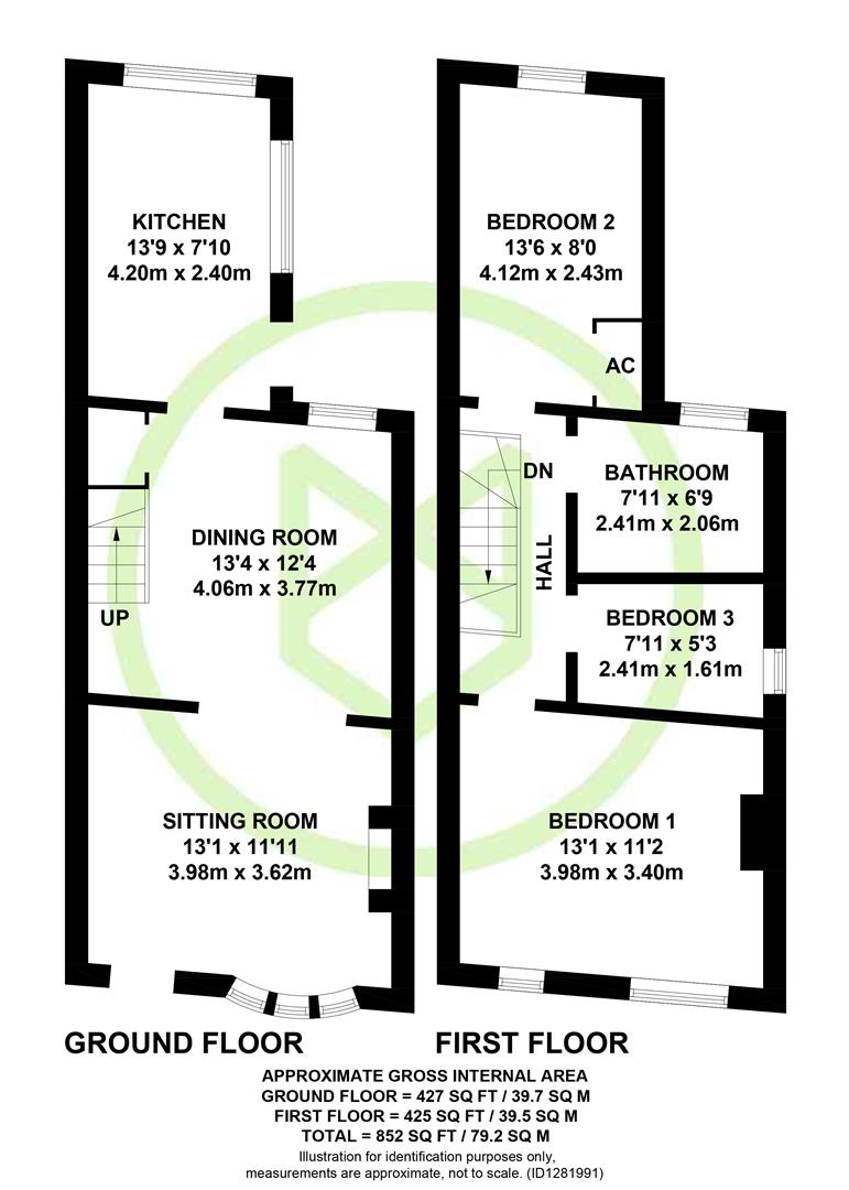 The first floor landing provides access to the three bedrooms and family bathroom. Bedrooms one and two are both double rooms, bedroom three is a good size single room. The bathroom is fitted with a white suite comprising WC, wash basin with storage under, bath with shower over and fitted screen.