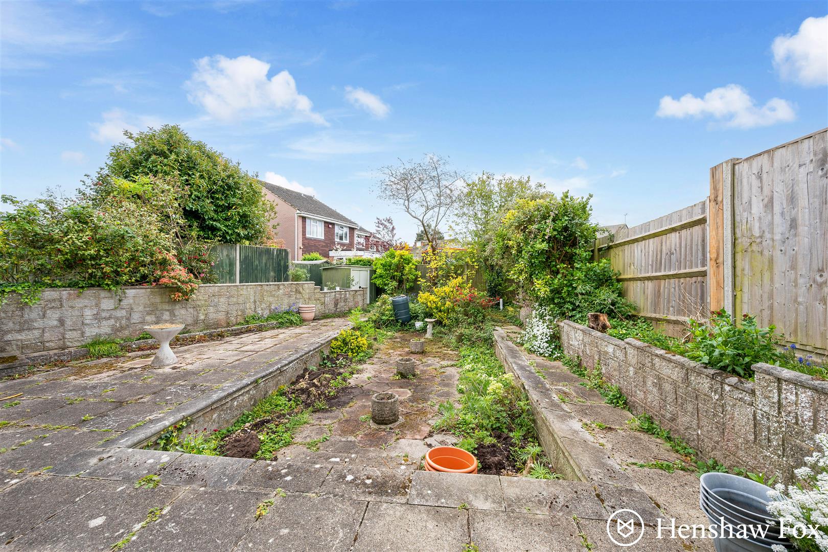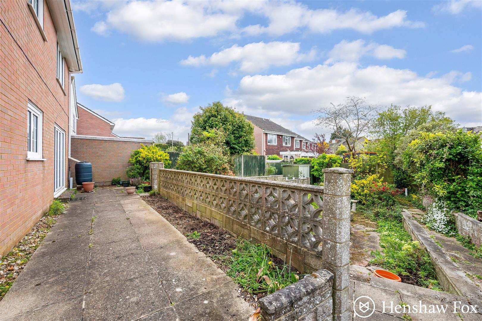 The rear garden is designed with ease of maintenance in mind and benefits from a desirable south-facing aspect, allowing for plenty of natural sunlight throughout the day. It offers a pleasant mix of outdoor spaces, including an adjoining patio area ideal for seating and entertaining, along with a larger paved section that previously accommodated a swimming pool and now provides a versatile area for a variety of uses. The garden is further enhanced by a selection of established shrubs adding greenery. A practical pedestrian gate provides convenient access through to the front of the property.